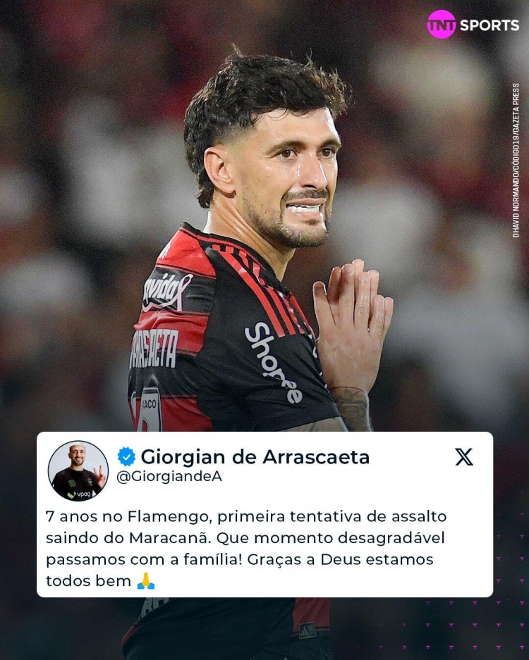 阿拉斯凯塔在社交媒体上写道:“在弗拉门戈效力7年,第一次在离开马拉卡纳球场时遭遇抢劫未遂。我和家人经历了多么不愉快的一刻。感谢上帝,我们都平安无事。”