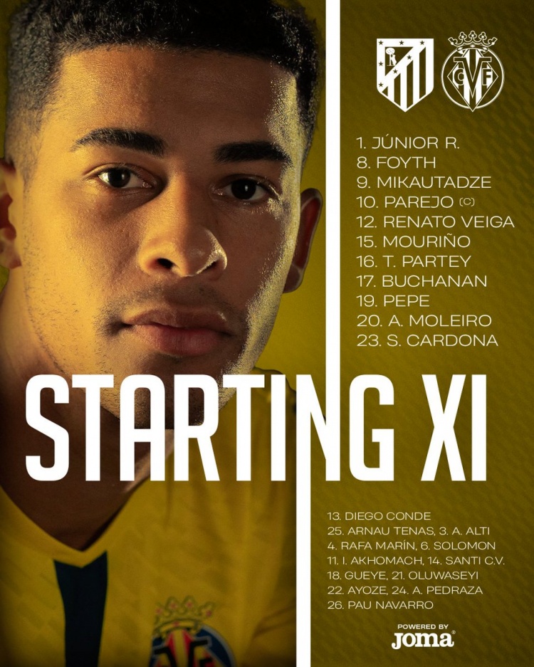 9月14日讯 北京时间今天3点,西甲第4轮马竞主场vs比利亚雷亚尔,此役双方首发已经公布。